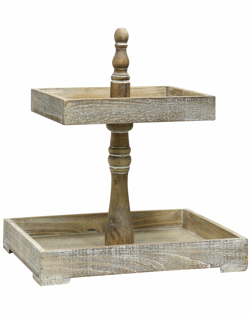 - Design details: an exceptional piece of farmhouse-inspired decor, this distressed wood tiered tray adds beauty and functionality to any dining room, kitchen, living room, or foyer. it features two rectangular trays stacked over one another and supported by a stylish central wooden column. this versatile piece can hold small accessories but is just as charming on its own. / wooden stacked trays / farmhouse