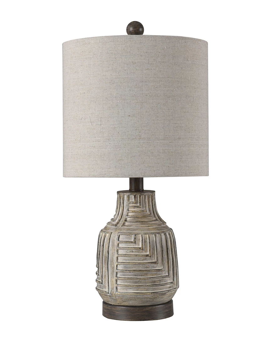 - Design details: Poly Resin base; Gray Hardback Fabric shade; requires 60-watt bulb; bulbs not included