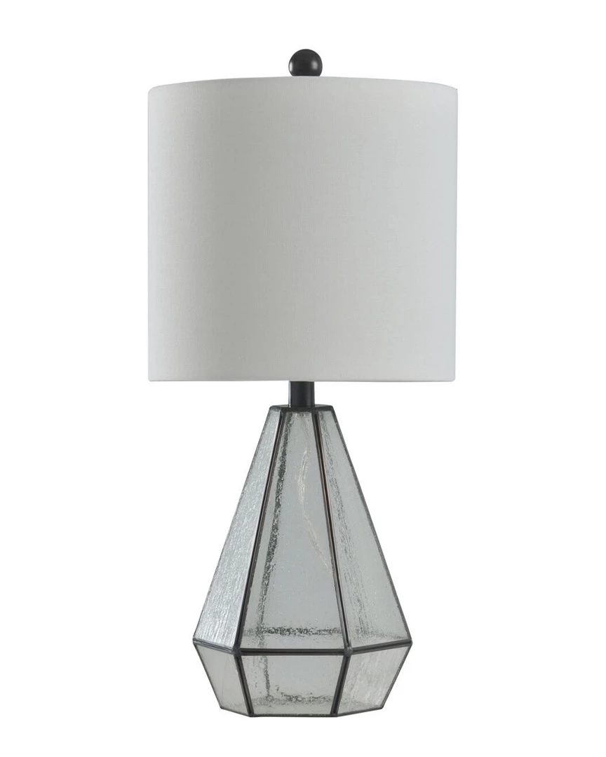 - Design details: Glass,Metal base; White Hardback Fabric shade; requires 100-watt bulb; bulbs not included