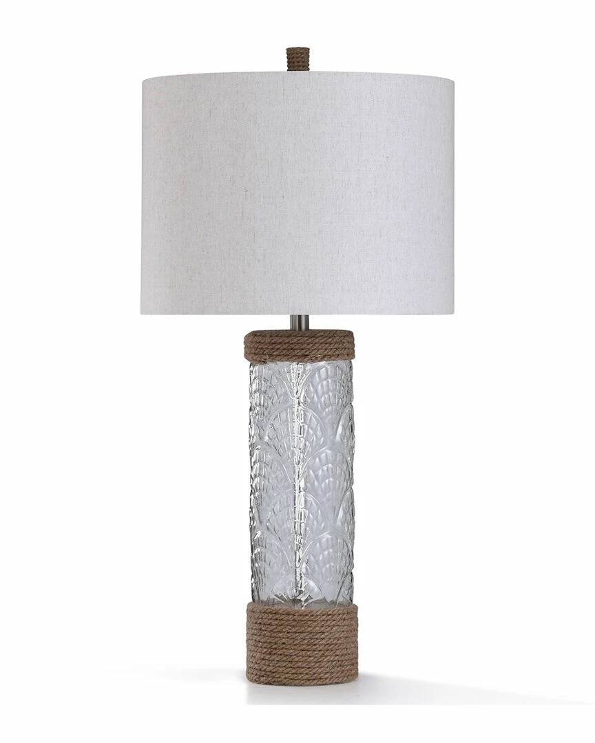 - This stylish Akurai glass column table lamp is a real head-turner. This chic coastal style three-way lighting fixture is set off by delightful details like natural rope tie accents and clear shell patterned motif. It is the perfect piece to shed some light on any contemporary styled bedroom or living room area.