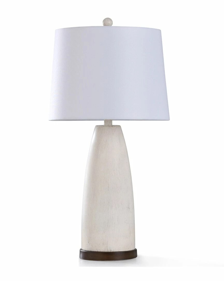 - This Batley lamp features a smooth eggshell painted body, which makes it a refined design statement in bedrooms, hallways, living rooms and offices alike. The painted wood-like base is made from poly resin that offsets the pristine white linen hardback shade. Design elements aside, this stately lamp emits a soft ambient light to brighten any space.