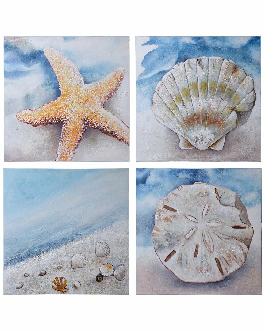 StyleCraft Beach Set Of 4 Coastal Animal Art Home Mirrors & Wall Art