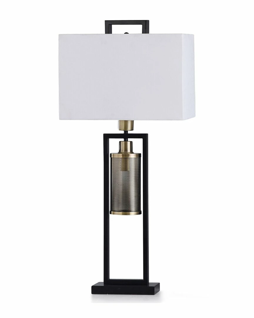 - Impress your guests with this contemporary metal Bingley table lamp. This chic geometrical three-way lighting fixture is perfect for any modern-styled space, including the bedroom, hallway, foyer or even an office environment. Featuring a handsome brushed black metal base that transitions seamlessly into a stylish brush brass metal body, this pendant nightlight is sure to turn heads.