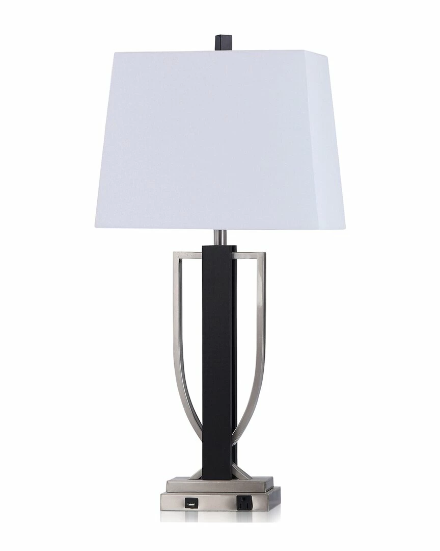 - Inject some style and timeless design into your home than with this brushed steel and wood Gavin table lamp. Its distinctive brushed steel metal and black wood body features a matching finial, a white linen hardback shade, and a convenient outlet and USB slot in the front of the base. Plus, the 3-way switch helps ensure your space will always be flooded with the perfect amount of ambient light.