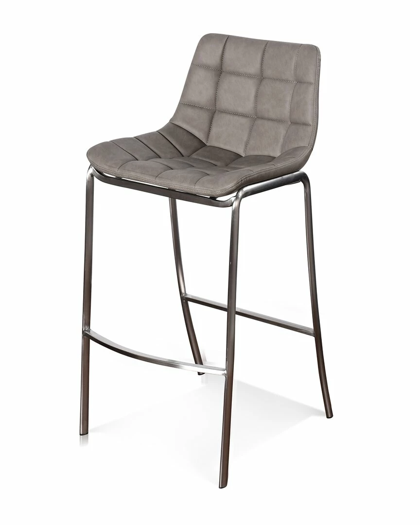 - The Gemma bar chair is a simple, modern low back bar stool with stainless steel legs. It sits 41″ high and comes upholstered in faux leather in a gray finish. This bar chair looks best arranged in pairs or in a series at the breakfast bar in the kitchen or in any bar setup in the comfort of your home.