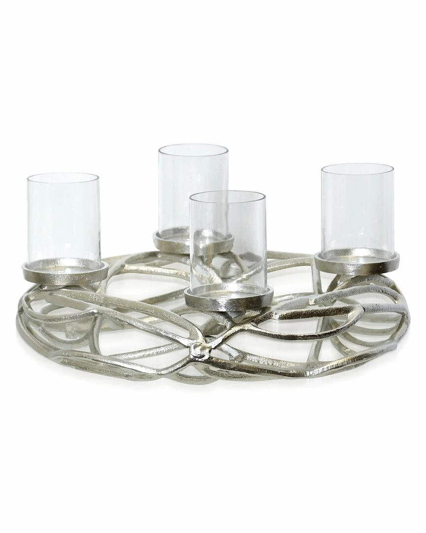 - Design details: change the feel of any room in your home with the stylecraft laurent aluminum and glass 4-light wreath candle holder. this holiday-themed candle holder is made from strong metal and holds four candles. this luxurious candle holder is perfect for any shelf or table setting. / due to the production process, each piece is unique and no two are exactly alike. / made of aluminum metal & clear glass.