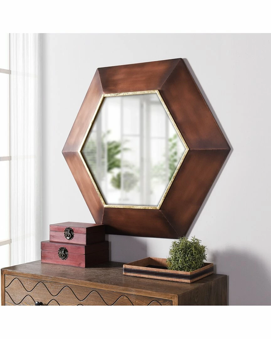 - Design details: add a new look to any part of your home with the stylecraft hexagonal metal mirror. this beautiful hexagonal mirror is made from iron metal and is finished with a rich bronze/gold finish. use this mirror to add a new element to any indoor space. / due to the production process, each piece is unique and no two are exactly alike. / the frame of this mirror is composed of iron metal.