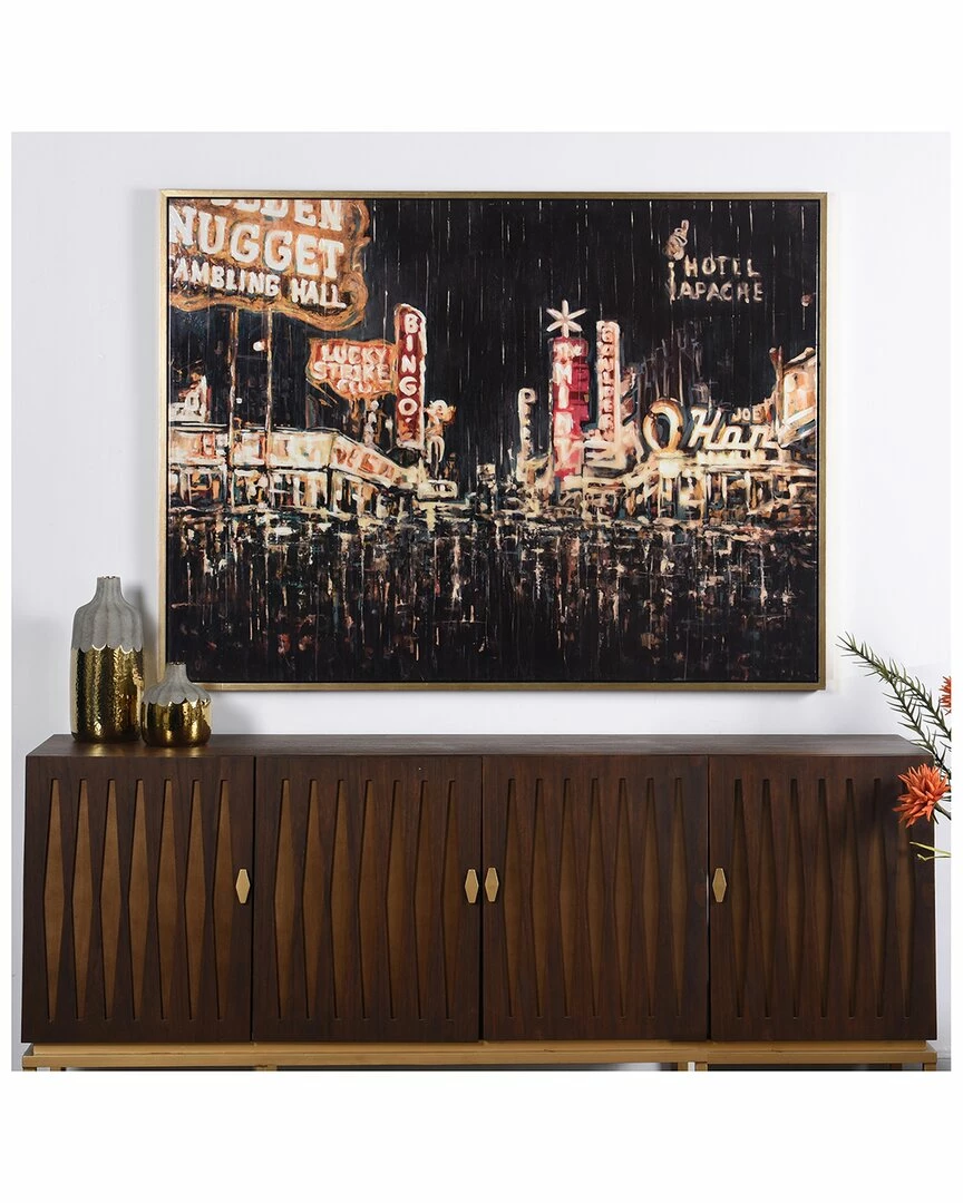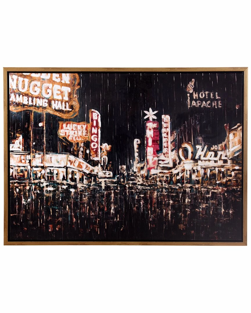 - Design details: an exclusive look, the retro vegas 1950 fremont hand embellished canvas wall art displays sin city in a rich high gloss epoxy coated print in a gold floating frame. made by a skilled artist with rich detailing and hand painted touches, this artwork is a glimmering look into the history of america’s favorite casino destination, las vegas. it’s a wonderful celebration of a brilliant time of glitz and glamour on the old downtown strip. / exclusive to stylecraft / canvas print with 50% handpaint – high gloss finish