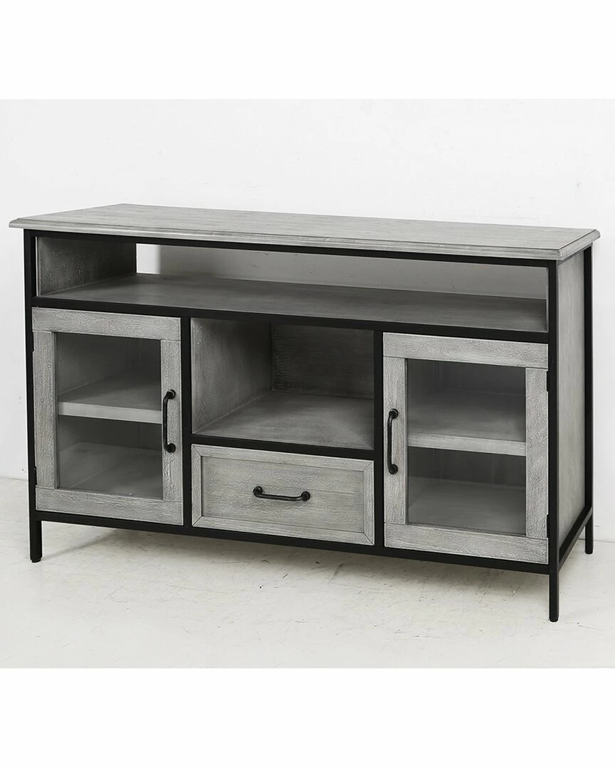 - Opt for a stylish and incredibly versatile storage option to your home décor arsenal with the Wood and Metal Cabinet. This storage cabinet has two doors and one drawer, ensuring you have ample storage space. This beautiful storage cabinet is finished in mango wood veneer and will thrive in a living room setting. Due to the production process, each piece is unique and no two are exactly alike. Cabinet has two doors, one drawer, one open middle shelf, and one open top shelf. The cabinet is finished in a mango wood veneer inside and outside. Cabinet has a fixed shelf behind the door. The cabinet does not require assembly.